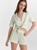 Блузка женская прямого силуэта из сатиновой ткани. Горловина круглой формы, в горловину втачан стояче-отложной воротник. Центральная застежка на пуговицы.