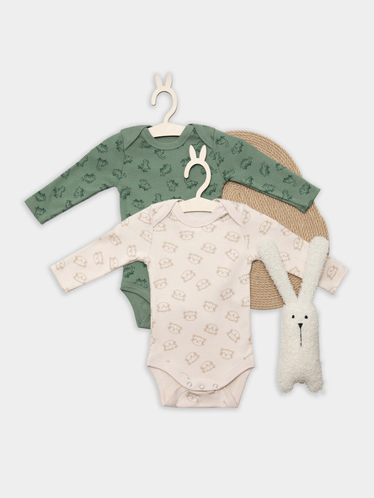 Совместные покупки Сургут Детская одежда Боди, ползунки и прочее — Mark Formelle БОДИ ДЕТСКОЕ (2ШТ.) 13016-2 13016-2 тигрята на пудре +динозавры на
