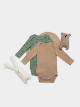 Низ боди застегивается на удобные кнопки-книпперы, которые надежно фиксируют изделие и упрощают одевание. Эти боди для новорожденных идеальны для сна, прогулок и домашнего отдыха. Если вы ищете, где купить детское боди в наборе, этот вариант станет отличным выбором благодаря качественным материалам и продуманным деталям.