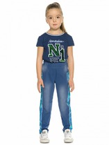 Брюки для девочек прямиго силуэта. Средняя посадка, пояс отрезной с эластичной тесьмой внутри 20RV. В поясе пробиты петли и втянут шнур из основного полотна.  Низ обработан швом в подгибку.