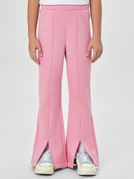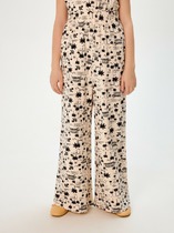 Брюки со середней посадкой. Пояс отрезной с внутренней эластичной тесьмой 30RV. Брюки расклешенный к низу. По центру передней части брюк расположен шов, по низу изделия разрезы.