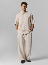 Брюки прямые, свободноые. Посадка по шву сидения слегка занижена.