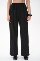 По низу брюк подгибка со шнуром внутри из основного полотна.