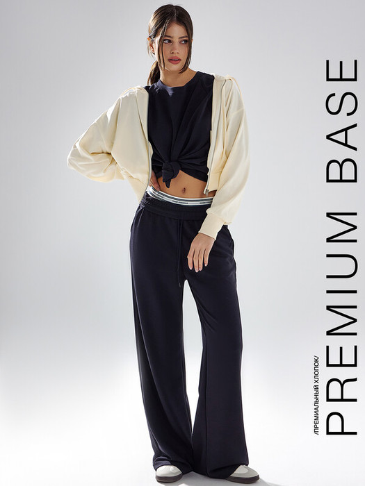 27.03 Vilatte Прямые брюки из джерси на резинке сзади D44.147 черный