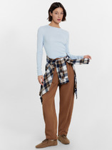 Пояс отрезной с эластичной тесьмой внутри. По переду пояса с внешней стороны пробиты петли и втянут шнур. По переду обработаны карманы-хулиганы, подкладка кармана из основного полотна. Нижние срезы брюк обработаны швом вподгибку с эластичной тесьмой внутри.