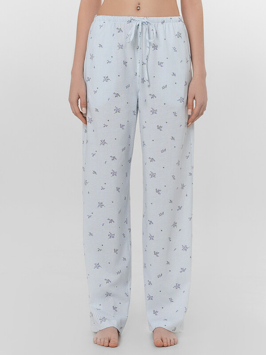 Домашние брюки с принтом — это уют и свобода в каждой детали. Высокая посадка и свободный силуэт из мягкого хлопкового трикотажа обеспечивают комфорт и полную свободу движений, идеально подходя для отдыха дома.