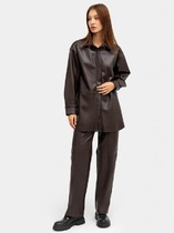 Брюки прямого силуэта, немного заужены к низу. Пояс цельнокроеный с резиной внутри 30RV. По центру пояса пробиты петли, протянута хб тесма 10мм. Низ брюк обработан в подгибку.