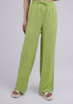 Брюки с посадкой на талии свободного силуэта. Пояс цельнокроеный с резиной внутри 20RV. По центру пояса пробиты петли, протянут шнур кругловязанный 5 мм 5KXWC-1. В боковых швах карманы. Низ изделия застрочен швом в подгибку.