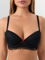 Ластовица на подкладке гарантирует гигиеничность. Обработка пройм и верхнего среза эластичной тесьмой предотвращает натирание, а регулируемые бретели с пластиковыми кольцами позволяют отрегулировать посадку. Если вы хотите купить бюстгальтер пуш-ап, который объединяет технологичность, хорошие материалы и визуальный эффект увеличения объема, эта модель станет вашим выбором. Черный бюстгальтер пуш-ап универсален — он подчеркнет образ под облегающей одеждой или станет основой для романтического лука.