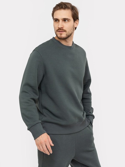 Джемпер из трикотажного футера с теплым подчесом. Длина до середины бедер, силуэт прямой. Линия плеча спущена. Рукава длинные, с притачными манжетами.  Горловина круглой формы. Отличный выриант для стильных городских образов!