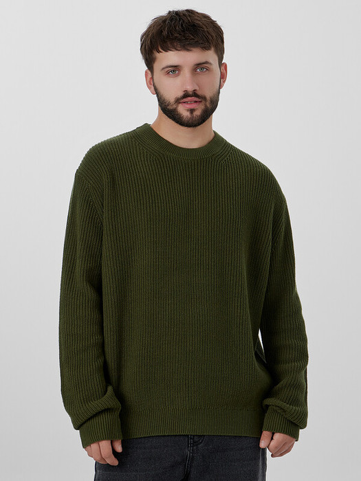 Зеленый мужской вязаный джемпер — это уют и стиль в современном исполнении. Модель свободного кроя с объемными рукавами и круглой горловиной создает расслабленный силуэт, идеальный для повседневной носки.