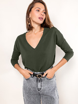 Vilatte Джемпер из премиального хлопка с эластаном D49.957 темно-оливковый