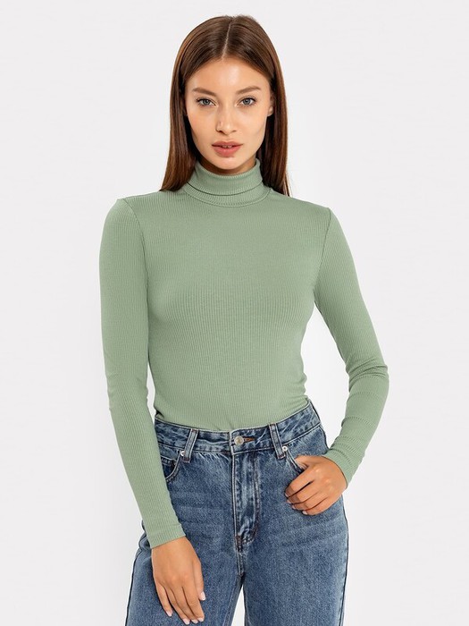Женский прилегающий джемпер с длинными рукавами и воротником-стойкой. В составе полотна преобладает нежная вискоза. Однотонная расцветка делает этот джемпер базовым и универсальным. Рекомендуем!