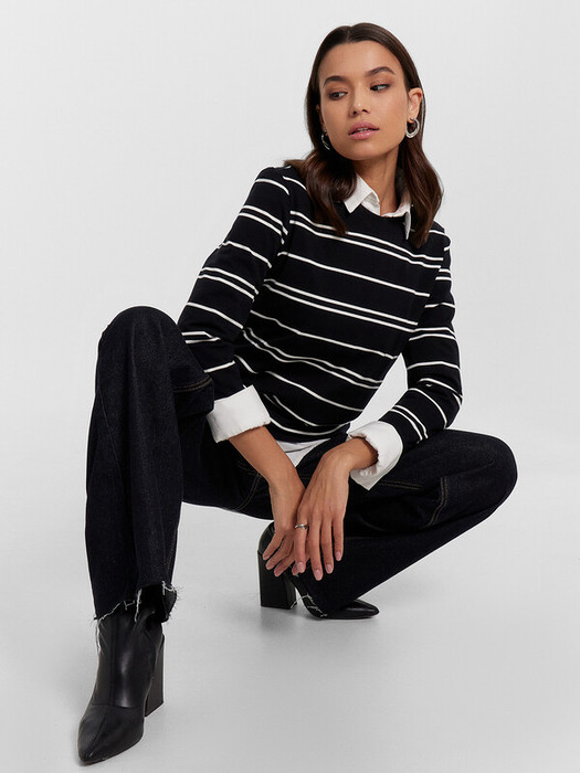 Совместные покупки Сургут Женская одежда Джемперы, свитеры, водолазки — Mark Formelle ДЖЕМПЕР ЖЕНСКИЙ 122867 122867 белая полоска на черном1 1050