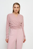 Джемпер женский прямого силуэта из трикотажного полотна кулирка. Горловина круглой формы, широкая обтачка из рибаны. Рукав втачной, длинный. Подгибки низа и рукава широкие.