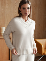 Женский джемпер свободного кроя выполнен из нежного материала селаник, который славится своей мягкостью и теплотой. Этот материал также отличается высокой износостойкостью и легкостью в уходе, что делает его идеальным выбором для повседневной одежды. Горловина круглой формы с воротником, имитирующим рубашку, и застежкой на пуговицу придает джемперу оригинальный и стильный вид. Длинные рукава со спущенной линией плеча и манжетами обеспечивают свободу движений и добавляют образу расслабленности и комфорта.