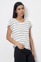 Материал с добавлением люрекса создает мягкое мерцание, которое привлекает внимание и переливается при движении. Круглая горловина аккуратно обработана бейкой, что обеспечивает аккуратный и прочный край.