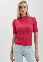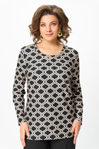 Джемпер свободного силуэта, длиной до бедер.  Горловина круглая, обработана обтачкой из рибаны. Рукава втачные длинные, линия плеча спущена. По низу рукавов отрезная манжета из рибаны. По низу джемпера отрезной пояс из рибаны.
