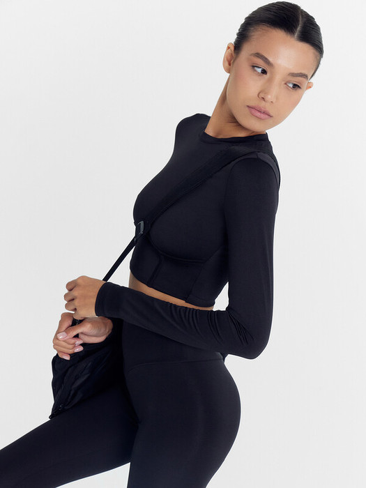 Низ топа и рукавов обработан швом вподгибку.