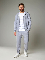 Брюки джоггеры свободные. Пояс цельнокроёный с эластичной тесьмой внутри. С внешней стороны пояса пробиты петли и втянут шнур с эглетами 8 KXWC-1 (и плоский 10 PXC-1 по заданию). На передних деталях обработаны карманы в швах. Подкладка карманов из кулирки. По низу отрезные манжеты из рибаны.