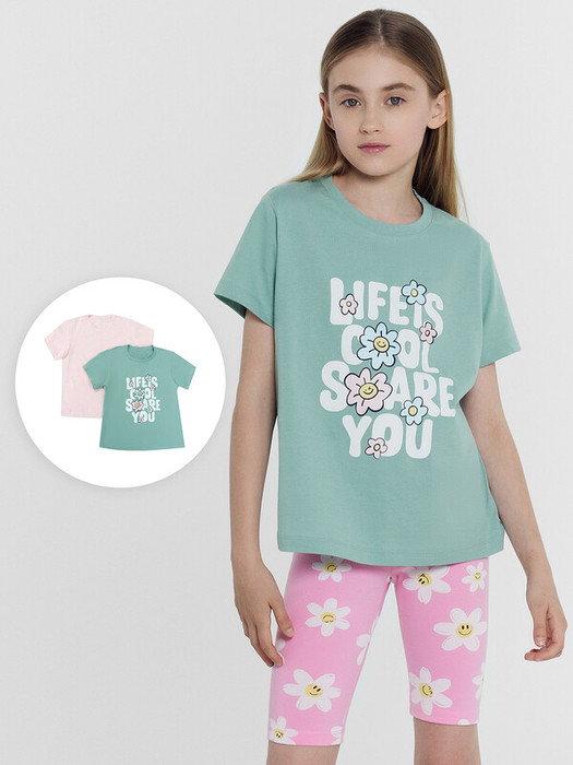 Совместные покупки Сургут Детская одежда Футболки, майки — Mark Formelle ФУТБОЛКА ДЛЯ ДЕВОЧЕК 2ШТ. 117835-2 117835-2 шалфей +ромашки на св.