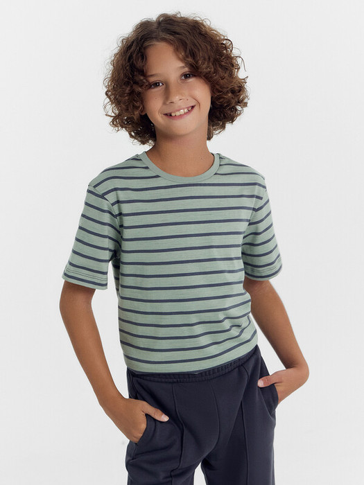 Mark Formelle ФУТБОЛКА ДЛЯ МАЛЬЧИКОВ 113379 113379 серо -зеленая полоска 1050