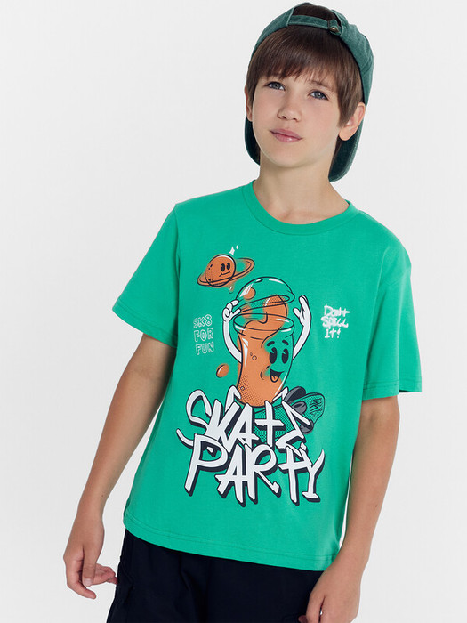 Футболка верхняя прямого силуэта. Перед и спинка цельнокроенные. Рукава втачные короткие. Линия плеча спущена. Горловина круглой формы, обтачка из трикотажного полотна рибаны 1*1. Шов втачивания рибаны по спинке закрыт бейкой из основного полотна. Низ футболки и рукавов обработан на 2-х игольной плоскошовной машине швом в подгибку.