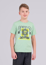 Длина до середины бедра. Рукав втачной, короткий. Горловина круглой формы. Окантована бейкой из основного полотна. Низ рукавов и футболки в подгибку.