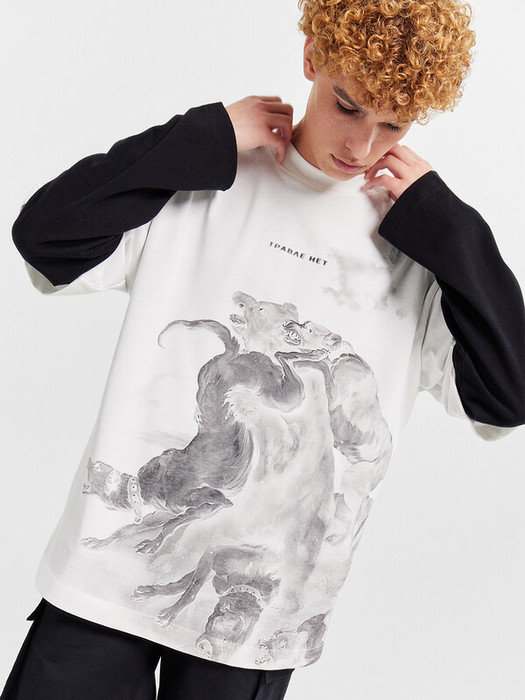 Футболка свободная, оверсайз.Горловина округлой формы обработана обтачкой из рибаны. Шов втачивания обтачки по спинке закрыт тесьмой хб.