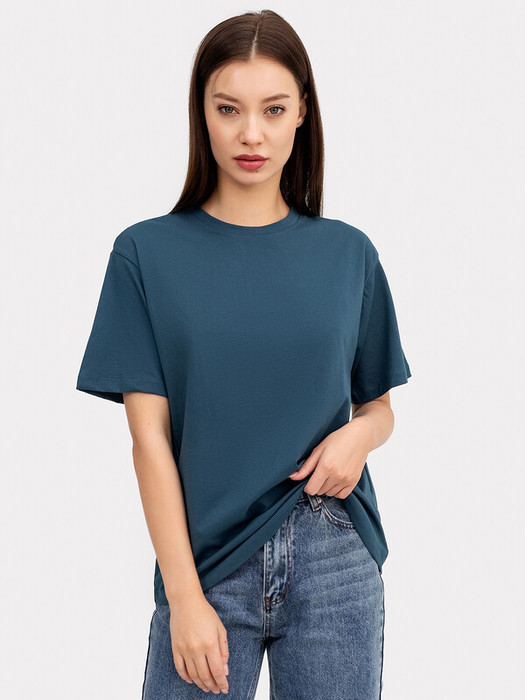 Хлопковая футболка свободного силуэта из трикотажного полотна кулирка. Горловина круглой формы. Свободу движений гарантируют спущенная линия плеча и углубленная пройма. Рукава широкие, чуть выше локтя. Стильная модель!