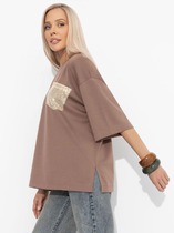 Хлопковая футболка свободного силуэта из трикотажной кулирки. Вырез круглой формы. Свободу движений гарантируют спущенная линия плеча и углубленная пройма. Рукава широкие, чуть выше локтя. Стильная модель!