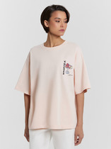 Женская футболка оверсайз свободного кроя выполнена из трикотажной кулирки, что обеспечивает комфорт и легкость. Округлая горловина и короткие рукава придают модели стильный и современный вид. Такая футболка отлично сочетается с различными предметами гардероба, делая её универсальным выбором для повседневной носки. Идеальный вариант для создания стильных и удобных образов.