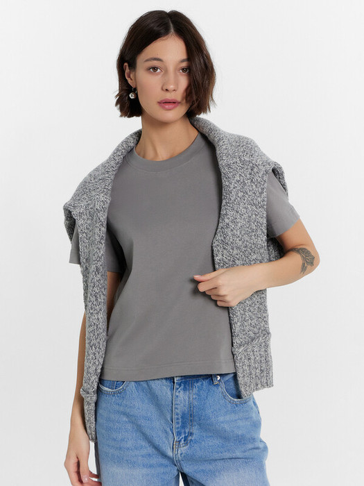 Футболка прямого силуэта из трикотажного полотна кулирка. Горловина круглой формы, широкая обтачка из рибаны.