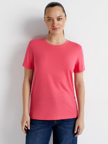 Футболка прямая, свободная. Горловина круглой формы обработана бейкой в 3 сложения из основного полотна. Рукава втачные, корткие. Нижние срезы футболки и рукавов обработаны швом вподгибку.