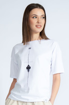 Эта женская футболка оверсайз из кулирки станет отличным дополнением вашего гардероба. Горловина круглой формы, спущенное плечо и углубленная пройма создают стильный и комфортный образ. Широкий рукав длиной чуть выше локтя добавляет непринужденности и комфорта. Изделие выполнено из нежной хлопковой кулирки — материала, обладающего отличной воздухопроницаемостью, позволяющего коже дышать и сохранять свежесть в течение всего дня. Кулирка также невероятно мягкая и приятная на ощупь, что обеспечивает комфорт при носке. Такая футболка станет идеальным выбором для повседневной носки, гарантируя стильные и уютные образы каждый день.