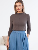 Нижние срезы футболки и рукавов обработаны швом вподгибку.