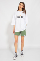 Нижние срезы футболки и рукавов обработаны швом вподгибку.