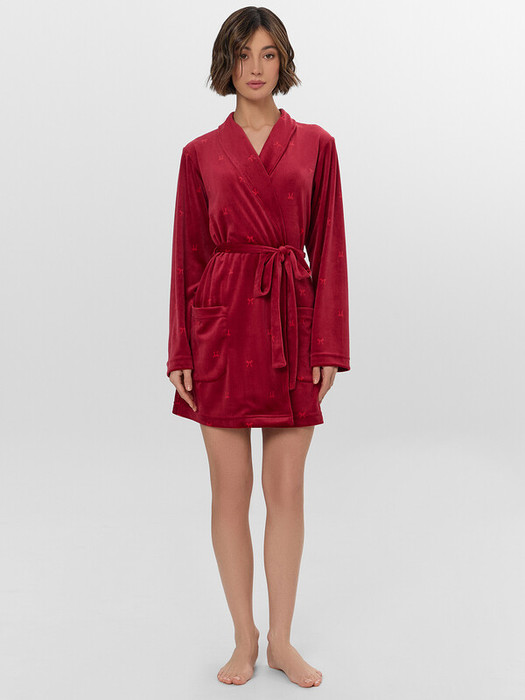 Женский халат с узором создает атмосферу уюта и волшебства. Модель прямого силуэта длиной выше колена удобна для повседневной носки. Спинка без швов и классические длинные рукава обеспечивают комфорт и свободу движений.