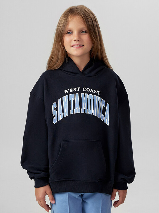 Худи для девочек, свободного силуэта (оверсайз), с капюшоном. Горловина округлой формы. Капюшон со средним швом, на подкладке из основного полотна. Шов втачивания капюшона закрыт хб тесьмой. Плечо спущено, рукав втачной длинный. По низу рукава отрезная манжета из рибаны. Пояс отрезной из рибаны, отстрочен. По переду карман кенгуру.