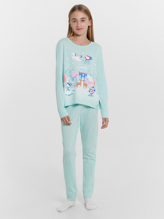 Совместные покупки Сургут Детская одежда Пижамы, одежда для сна — Mark Formelle КОМПЛЕКТ ДЛЯ ДЕВОЧЕК (ДЖЕМПЕР, БРЮКИ) 567720 567720 иней +белые сн