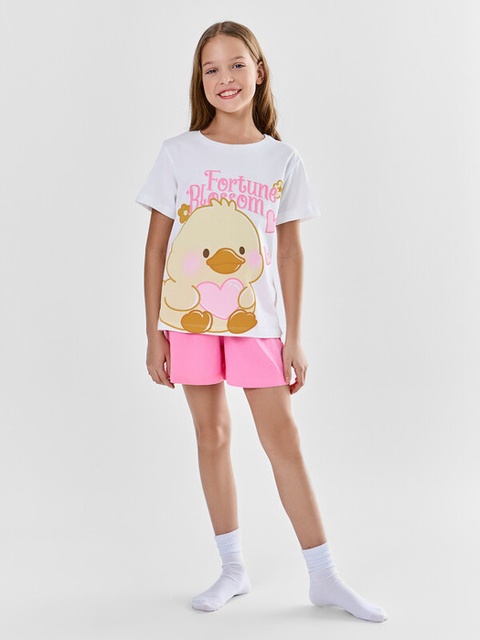 Комплект для девочки, состоит из футболки с короткими рукавами и шорт из натурального хлопка. Подходит для сна и отдыха. Материал очень приятный к телу, хорошо пропускает воздух, что позволяет чувствовать себя комфортно даже в жаркую погоду. Идеальный выбор детской одежды для дома. Стильно, красиво, комфортно. Футболка декорирована интересным принтом, шортики однотонные. Широкий размерный ряд, базовые и яркие расцветки, модели с принтами, рисунками и печатями. Купите детскую пижаму для девочки от Mark Formelle, порадуйте ребенка красивым и стильным подарком!