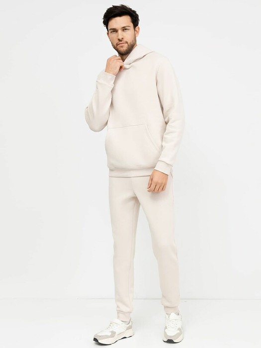 Комплект из трикотажного футера с теплым подчесом. Худи свободного силуэта с капюшоном, который по переду идет внахлест, с круглой горловиной и длинными рукавами на манжетах. Слегка спущенная линия плеча и расширенная пройма дарят полную свободу движений. Брюки зауженого силуэта, с регулировочным шнуром в поясе, с карманами и манжетами. Стильный комплект!
