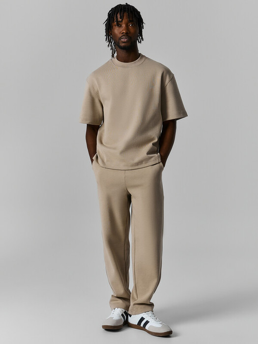 Пояс отрезной с эластичной тесьмой внутри. По переду пробиты петли и втянут шнур 8 мм с эглетами (8EKXWC-1).На деталях переда карманы с отрезным бочком. Подкладка карманов из кулирки. Боковые швы отстрочены декоративной строчкой. Нижние срезы брюк обработаны швом вподгибку.