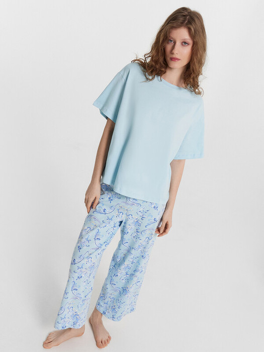 Совместные покупки Сургут Женская одежда Пижамы, халаты — Mark Formelle КОМПЛЕКТ ЖЕНСКИЙ (ДЖЕМПЕР, БРИДЖИ) 592600 592600 голубой +узоры на