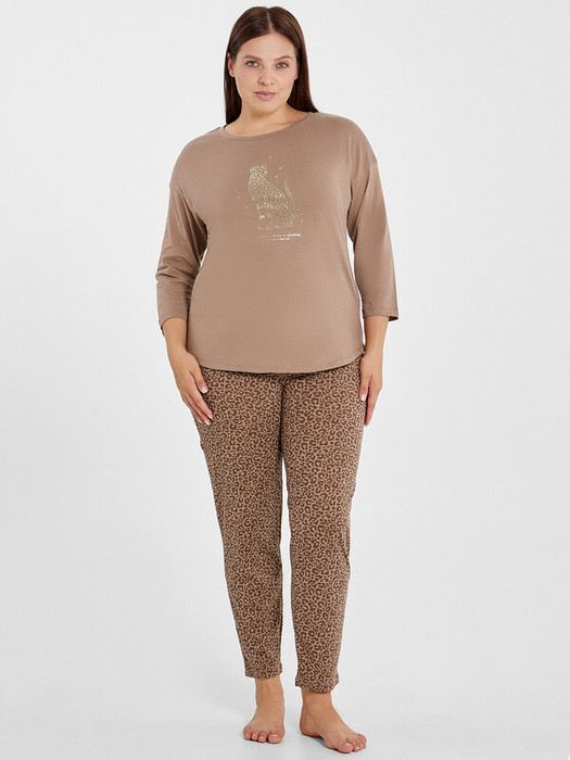 Милая пижама женская с брюками и джемпером из высококачественного хлопка. Лонгслив длиной до середины ягодиц, прямого силуэта, с круглой горловиной и длинными рукавами. Спинка лонгслива немного длиннее передней части, в боковых швах обработаны стильные разрезы. Брюки длинные и свободные, немного заужены к низу, с эластичной тесьмой в поясе. За счет мягкого материала модель подойдет для любого типа фигуры. Комплект одежды женской подойдет представительницам прекрасного пола любого возраста, а также беременным и кормящим мамам. Пижама женская теплая согреет вас в прохладное время года, в ней вы будете стильной и красивой. Носите ее не только как ночную одежду для сна, но и днем, как комфортную одежду для дома. Пижамы бренда Mark Formelle имеют широкий размерный ряд, обладательницы соблазнительных размеров plus size найдут для себя подходящий вариант. Комплект для хорошего настроения!