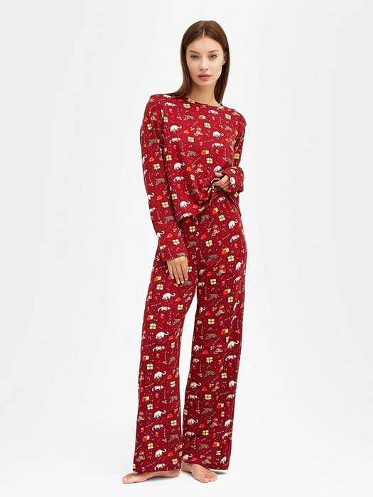 Хлопковый домашний комплект для женщин. Состоит из расслабленного лонгслива и брюк свободного силуэта. Лонгслив с круглым вырезом, длинными рукавами. Брюки прямые, с эластичной тесьмой в поясе. Рекомендуем для крепких снов и домашних дел!