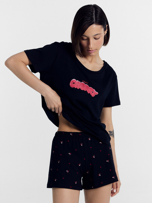 Совместные покупки Сургут Женская одежда Пижамы, халаты — Mark Formelle КОМПЛЕКТ ЖЕНСКИЙ (ДЖЕМПЕР, ШОРТЫ) 592325 592325 черный +вишенки на