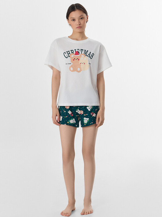 Женская пижама с новогодним принтом создает особенное праздничное настроение. Погрузитесь в атмосферу уюта и праздника с этим очаровательным женским комплектом, состоящим из футболки и шорт. Пижама станет идеальным выбором для комфортного сна и расслабленного отдыха.
