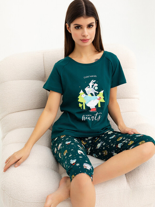 Совместные покупки Сургут Женская одежда Пижамы, халаты — Mark Formelle КОМПЛЕКТ ЖЕНСКИЙ (ФУТБОЛКА, БРИДЖИ) 592342 592342 хвоя +зверята на
