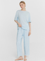 Футболка свободного силуэта. Горловина круглой формы с обтачкой из основного полотна. Рукава втачные свободные, линия плеча спущена. Низ рукавов футболки обработаны швом в подгибку. Брюки прямые свободные. Пояс отрезной с эластичной тесьмой внутри, отстрочен. На передних деталях шорт карманы «хулиганы».Низ брюк в подгибку.